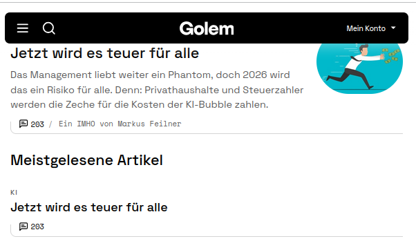 (German) Management continues to love a phantom, but in 2026 it will be a risk for everyone. Because private households and taxpayers will foot the bill for the costs of the AI bubble.