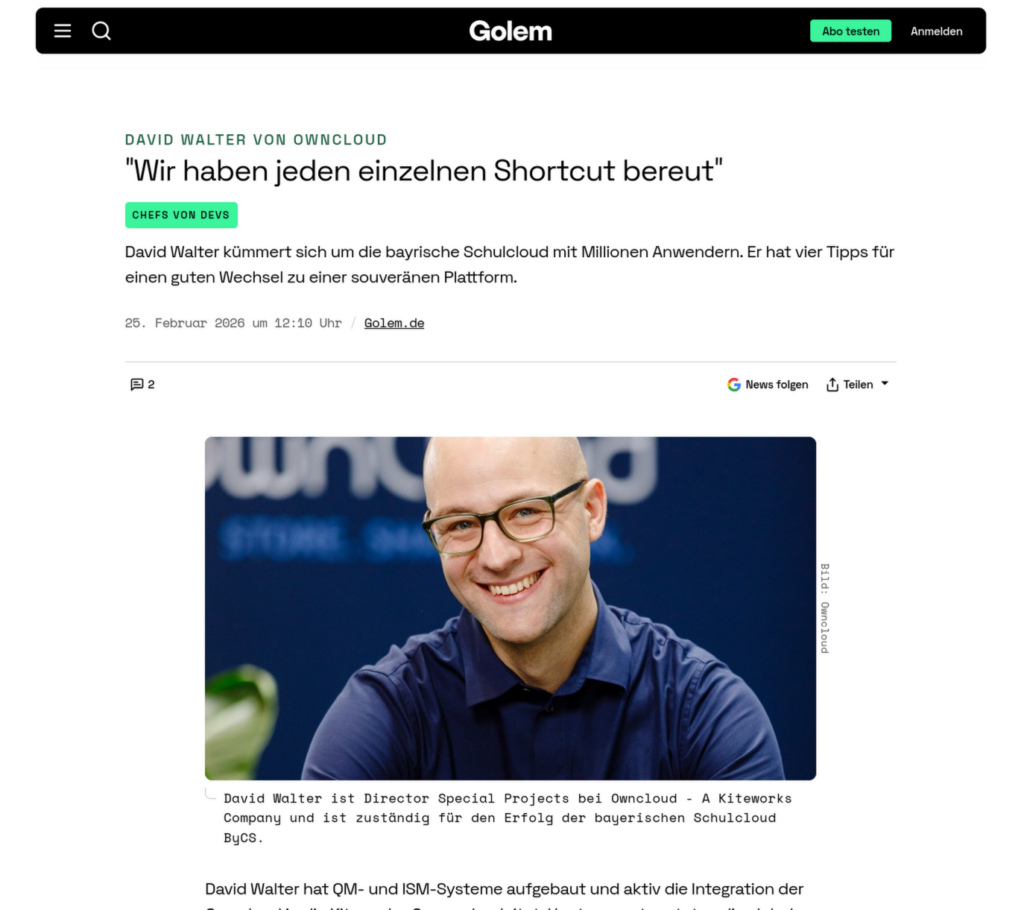 For the Golem Chefs von Devs newsletter, February 2026: David Walter takes care of the Bavarian school cloud with millions of users. He has four tips for a good transition to a sovereign platform. (in German)