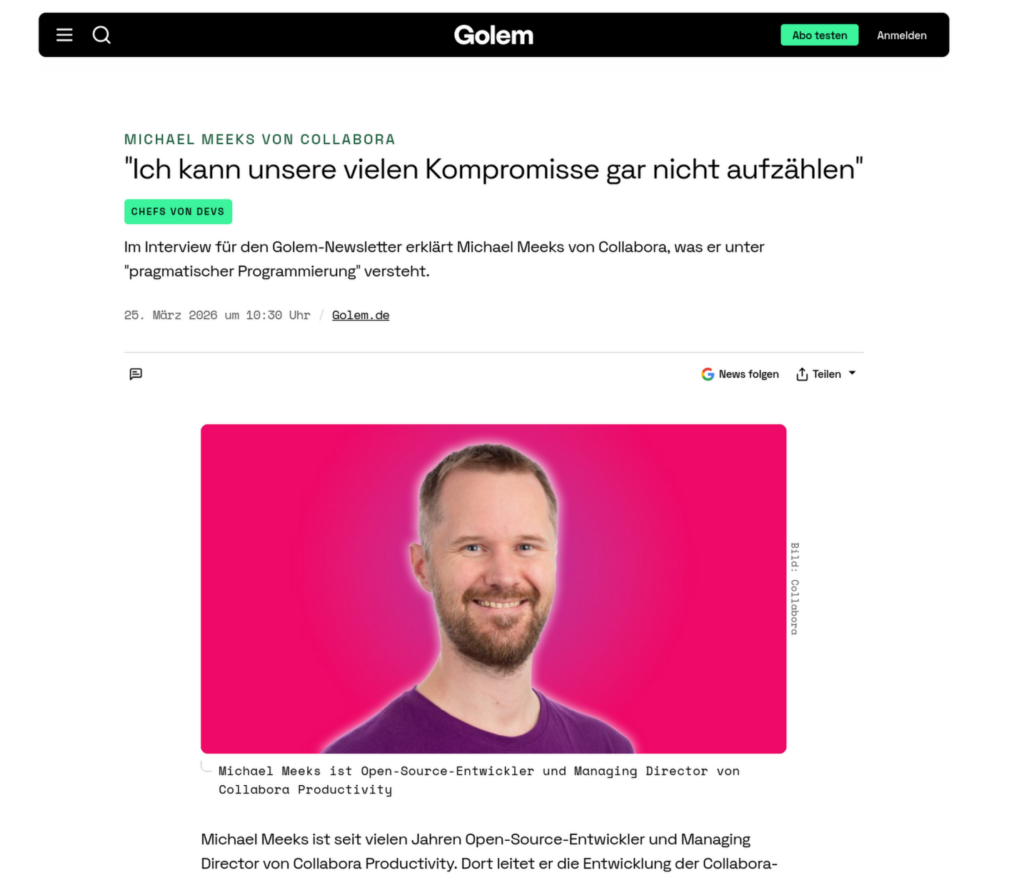 In an interview for the Golem newsletter, Michael Meeks from Collabora explains what he means by “pragmatic programming”. (in German)